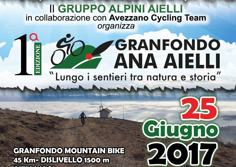 1ˆ Edizione della Granfondo ANA Aielli di 45 Km e dislivello di 1500 mt con la vittoria dell'Aiellese Mauro Tucceri Cimini, Avezzano Cycling Team